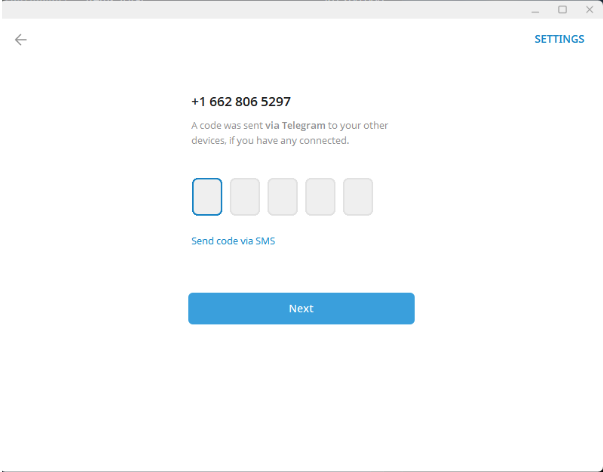 After entering the number in the Telegram app, Telegram will ask for a verification code (OTP).